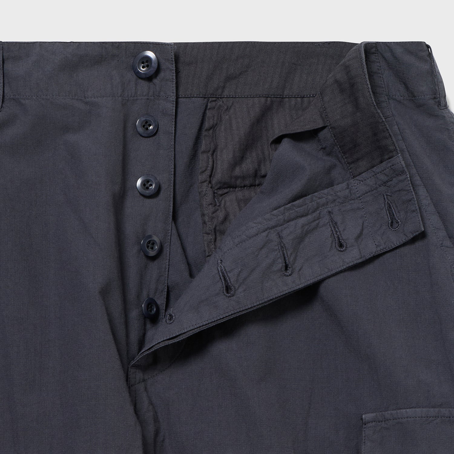 元々はこちらもベトナム期のジャングルファティーグ6ポケをベースに考えましたが、当時のものは意外に細く、今の時代性を鑑みた結果、このワタリ幅・裾幅となりました。