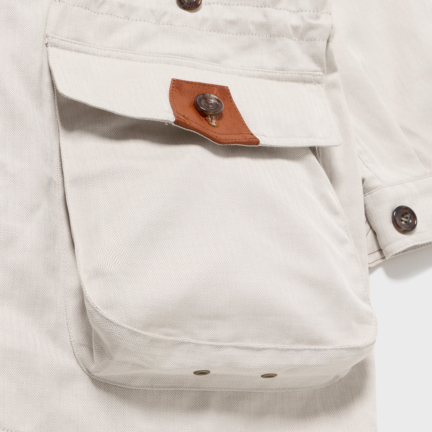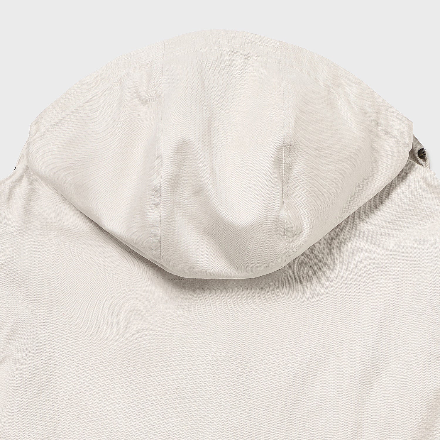 経糸は、ただでさえ毛羽が少なく光沢のある海島綿に、さらにガス焼きを施すことで至高の質感を引き出して使用。緯糸にはシルクリネンの光沢と素材感を加え、天然素材による極限の風合いを目指しました。